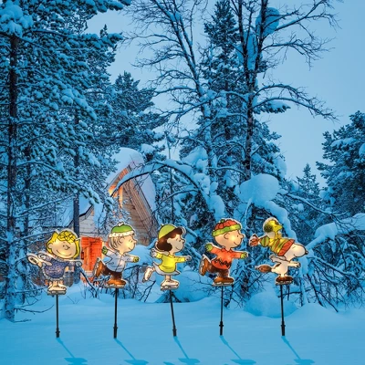 Guide your holiday guests and family to your doorstep and proudly show off your Christmas spirit with the ProductWorks12-Inch Icon pre-lit Peanuts Skating Christmas Pathway Markers. These officially licensed light-up pathway markers feature loveable Peanuts characters Charlie Brown, Linus, Sally, Lucy and Snoopy with his best friend Woodstock along for the ride! Mount them into the ground with the included 14inch stakes. Let these classic and beloved characters lead you to a place of pure happiness this Christmas season. With 50 lights total you and your guests will always be able to find your way. The sturdy construction will keep this charming addition to your Christmas decorations ready season after season while the narrow profile makes it easy to store when not in use. The bright, vibrant colors of each character will bring a healthy helping of holiday cheer to any home or yard. Includes 5 pathway markers and 5 ground stakes..