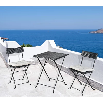 - Thanks to its waterproof and rustproof features, the bistro set is suitable for most indoor and outdoor spaces. Starting an afternoon tea on a seaside balcony with a bistro set is an unforgettable memory, or in a small garden corner where the family gathers every weekend.