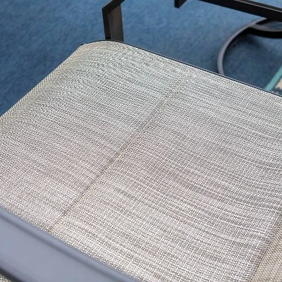 This chair offers comfy feeling when it serves as a dining chair or a conversation seat from Captiva Designs.The seat and back of the dining chair is made of sling fabric.It feels neither too hard nor too soft.The material is breathable.You will not feel tired or uneasy if you sit on it for a long time.Steel frame and powder coating offer the stable and durable applying.