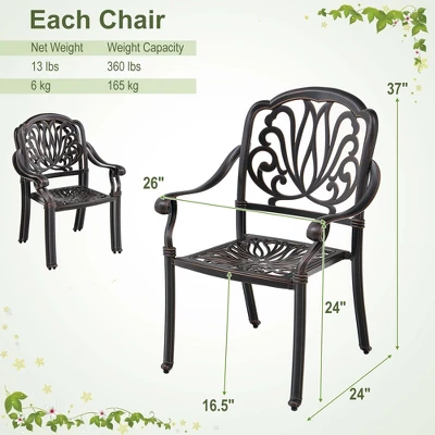 - Weather Resistance: Made of selected cast aluminum, these patio dining chairs are rustproof to withstand changing weather for better outdoor performance.