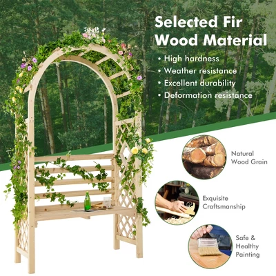 - Natural Wooden Material: The garden arbor with bench is made of selected fir wood material with delicate craftsmanship, which is weather-resistant, high-hardness, and durable, ensuring long-term outdoor use. And through carefully polishing treatment, the surface is smooth and burr-free.