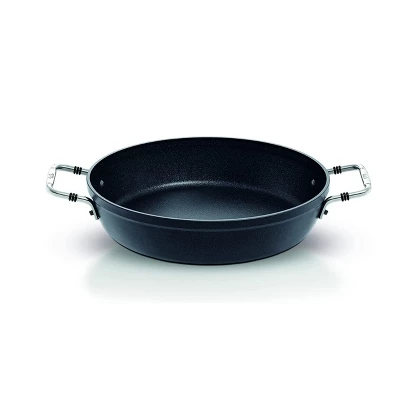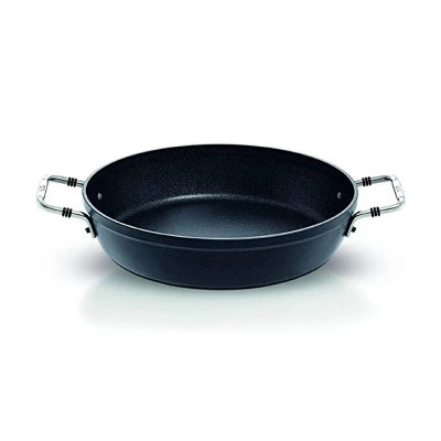 - Highly Scratch-Resistant Serving Pan: Extremely durable pan with an aluminum body and a black water-based coating; safe for metal kitchen utensils