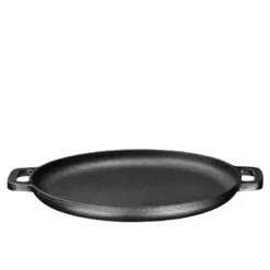Bruntmor Pre Seasoned Cast Iron 12 Inch Skillet Pan Dual Handles Pizza Pan Large Loop Handles, Black