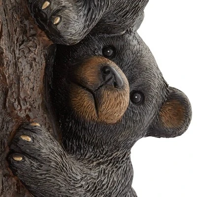 - Black and brown finish with realistic detailing on the wood log and bears. Lightweight resin construction, easy to move and position.