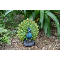 Techko Maid Peacock Proud Solar Outdoor Garden Statue Decor With Spotlight