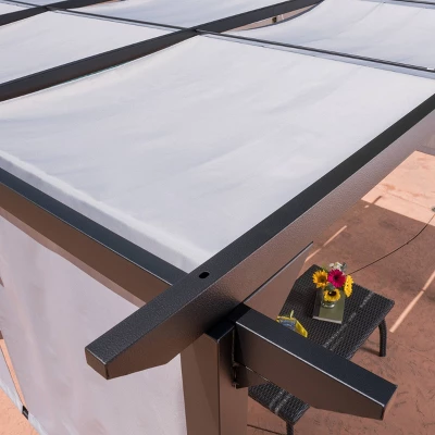 Transform your backyard, patio or garden into a place of mystery and romance with this Christopher Knight Home Lawrence 10′ x 10′ Steel Gazebo. Perfect for summer days when you are looking to avoid the sunlight but still enjoy your patio, this gazebo features shaded areas while still maintaining an open and airy feel to it. With its pergola inspired design, not only can you enjoy your gazebo as is, but you can also hang lights or vines around the tops of the cross beams that extend out creating an oasis in your back yard.