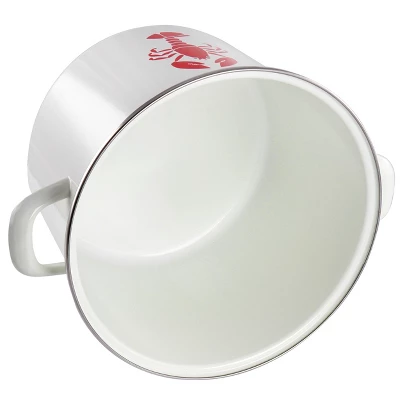 Boil up lobster and other seafood delicacies in this 16-quart Americana pot from the Martha Stewart Collection. Constructed with heavy gauge steel with a durable enamel finish that is oven safe up to 450 Degrees Fahrenheit. Wide handles make for easy transport. Decorated with a printed lobster motif, the pot is sized to hold a large capacity for family gatherings.
