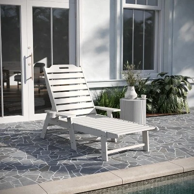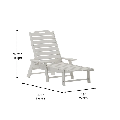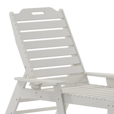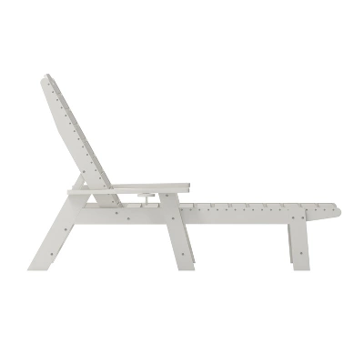 Total comfort can be delivered right to your door with this all-weather Adirondack style adjustable lounge chair with cupholder. Boasting a supportive back that can be adjusted to 5 recline positions, an elongated seat to cradle your lower extremities, and extra wide arms with a cupholder, this chair is ideal for any space. All weather HDPE mimics the look of wood, but is stronger and will not rot, chip, or peel and the UV fade resistance allows year round use. Assembly is quick and easy and a damp cloth takes care of any cleanup. Available in multiple colors, feel free to mix and match or maintain a uniform color to suit your personal taste.