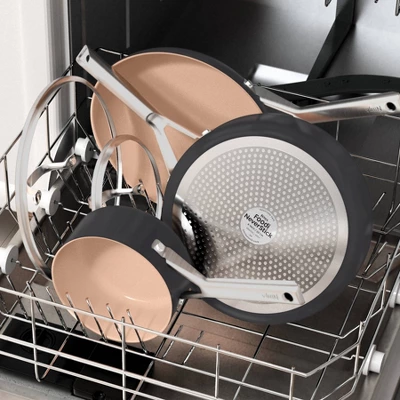 Meet the Ninja Extended Life™ Ceramic cookware that lasts for years. Our CeramicLock™ coating provides 5 years of nonstick performance while traditional ceramic pans can wear out in as little as 1 year. Extended Life™ Ceramic requires little to no oil or fat, making healthy cooking easier without compromising performance. The unique durable design is oven safe to 550°F, easily wipes clean and is dishwasher safe. Enjoy peace of mind when using CeramicLock™ coating made without harmful chemicals to align with your lifestyle.