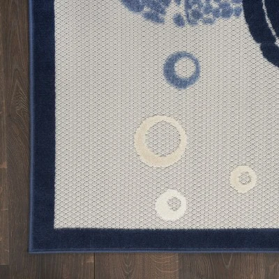 Invite fun and casual vibes to your patio, porch, or indoor space with this outdoor rug from the Aloha Collection. A pair of textured sea turtles make their way across the flatwoven ground, surrounded by multicolored “bubbles” that add a touch of whimsy and a thick border that helps define conversation areas. Aloha is machine-made from easy-clean polypropylene: simply hose rinse and air dry.