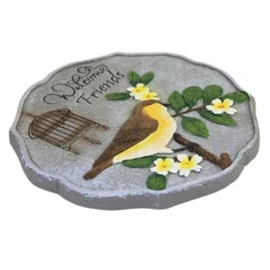 LuxenHome Patina Resin Rectangular Bubbler Outdoor Fountain With LED Lights And Bronze Birds