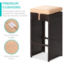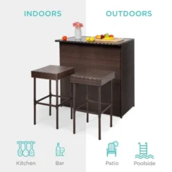 Best Choice Products Outdoor Patio Wicker Bar Counter Table W/ 2 Steel Shelves, 2 Sets Of Rails