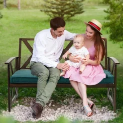 Costway Outdoor Garden Park Bench With Padded Cushion Wood Grain Coated Heavy Duty Frame