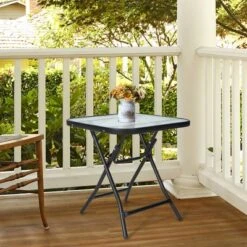 Emma And Oliver All-Weather Commercial Grade Indoor/Outdoor Steel Patio Coffee Table In Black
