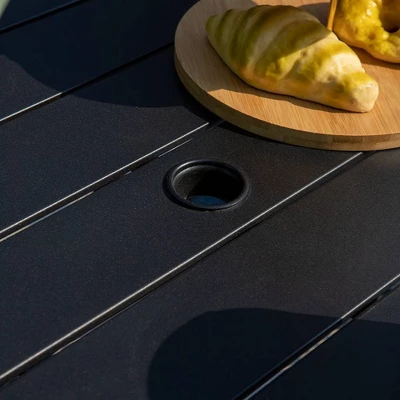 This black steel table offers comfy feeling when it serves as a dining table from Captiva Designs.It accommodates 4 seats around.The steel metal is powder-coated and strong enough for a long time serving.Classic pattern design gives elegant and beautiful look.It is a perfect choice for outdoor and indoor applying.