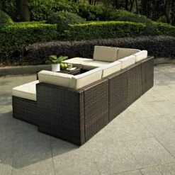 Palm Harbor 8pc All-Weather Wicker Patio Seating Set – Sand – Crosley