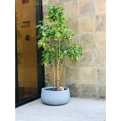 These elegant round planters have authentic concrete finish with visible pores make them beautiful contemporary pieces.The look and feel is true concrete but it weights substantially less than it looks. It also has very smooth finish instead of rough concrete potters you might be used to. The size is very generous and can hold a good amount of plants without looking crowded. Would look great on apartment balcony or large backyard patio. Modern low bowl planters with smooth lines and a solid charcoal finish that are ideal for endless succulent designs. Place on your patio or throughout your garden to add variety and color. Made of lightweight concrete through an ecofriendly manufacturing process. This composite material has no ruber, plastic, and steel. This material has all the advantages of concrete such as strength, durability, weather and damage resistance. Materials involve cement and weather-resistant fiberglass.