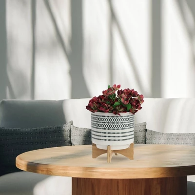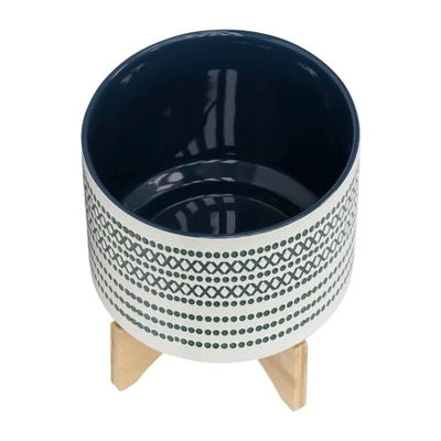 This planter pot will make the perfect addition to your home or office decor. It can complement any of your existing furniture, or be used in any corner. Crafted from ceramic, sitting atop a wooden stand adding height and style. The textured blue dots design will give a stand out feature, well the matching interior color will contrast your beautiful plants. The stand not only adds height and style, but its also perfect to protect your delicate surfaces. Perfect for offices, bedrooms , or any corner of your home.