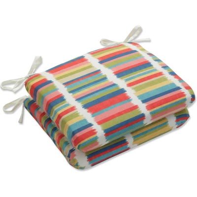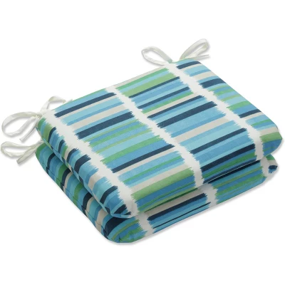 Set Of 2 Outdoor/Indoor Rounded Corners Seat Cushions Solar Stripe – Pillow Perfect