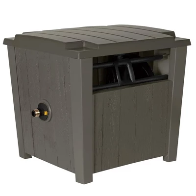 Keep your garden hose neatly stored out of sight yet conveniently accessible with this 2-pack of Farmington Hideaway Storage Pot Container from Suncast.These pots can hold up to 175 feet of a standard 0.63-inch vinyl hose, while the attractive wood-like pattern design gives a farmhouse twist to your outdoor setting, entirely concealing your hose, protecting it from extreme sunlight, and extending the life span. Featuring a Slid Trak hose guide, this provides manual tracking assistance for even rewinding onto the reel rewinding to maximize capacity. With Smart Tube cross-threading, you can be sure that these pots will not leak onto your backyard patio settings. Constructed of durable materials that resist harsh weather conditions, these hose storage pots are easy to maintain and are built to last.Make watering your plants a breeze and add a touch of style to your outdoor space with the 2-pack of Farmington Hideaway Garden Hose Storage Pot Container from Suncast, the ideal garden tool addition for all garden enthusiasts.