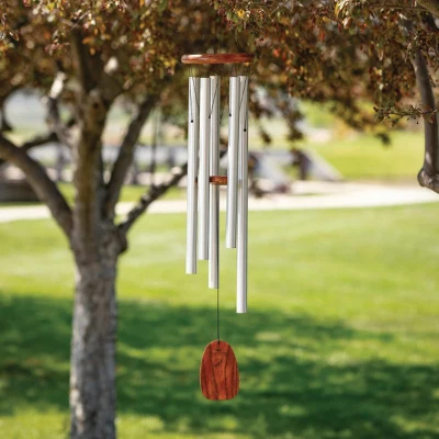 - Made With Long-Lasting Materials – These handcrafted, wind-activated wind chime are bold in design and resist most weather conditions. Made of teak finish ash wood, 5 silver aluminum tubes, removable, silk-screened windcatcher for easy customization