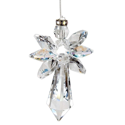 The beautiful clear crystals reflect every color of the rainbow. This large Crystal Guardian Angel works equally well as a suncatcher or Christmas ornament – or hang it in your office or dorm room to give you a little happiness every time you see it.Not boxed, it comes with a sheer organza gift bag.Recommended for indoor use.